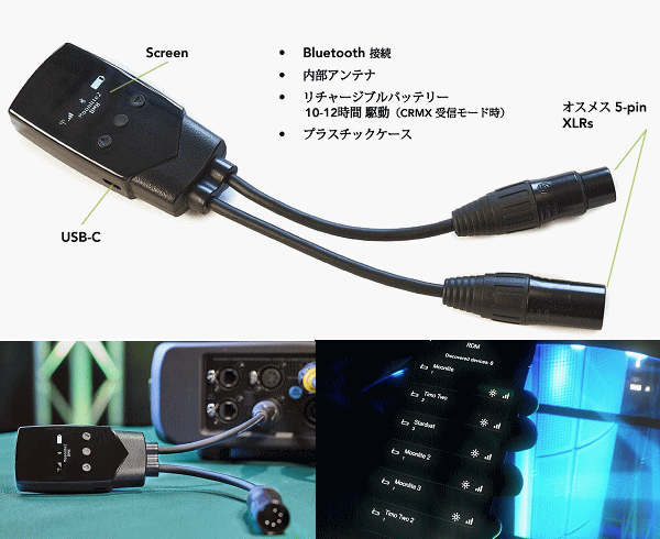 ・LumenRadio 独自の先進的な CRMX ワイヤレス テクノロジーを,使用したワイヤレス DMX トランシーバー |